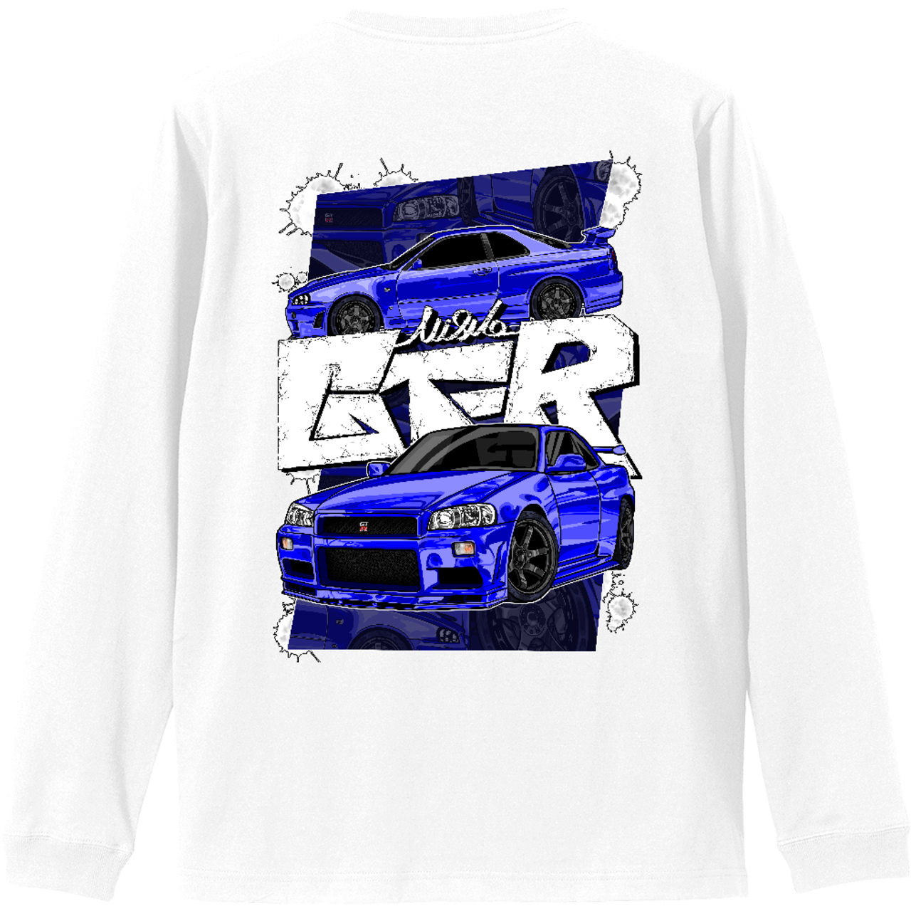 ストリートを駆け抜けた伝説、**日産スカイライン GT-R(R34)**を大胆にグラフィックで表現。